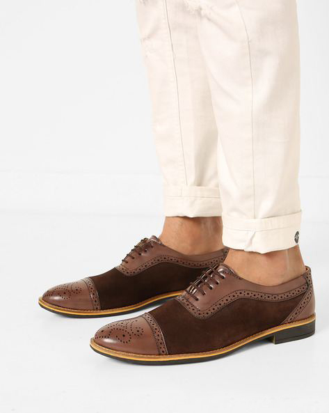 Oxford Two Tone Brown Genuine Suede Leather Brogue Cap Toe Lace Up Handmade Shoes
