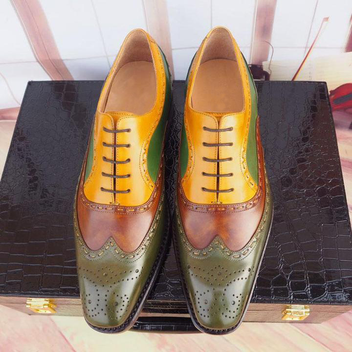 Multi Color New Men Real Cowhide Leather Wing Tip Brogue Toe Handmade Lace Up Shoes