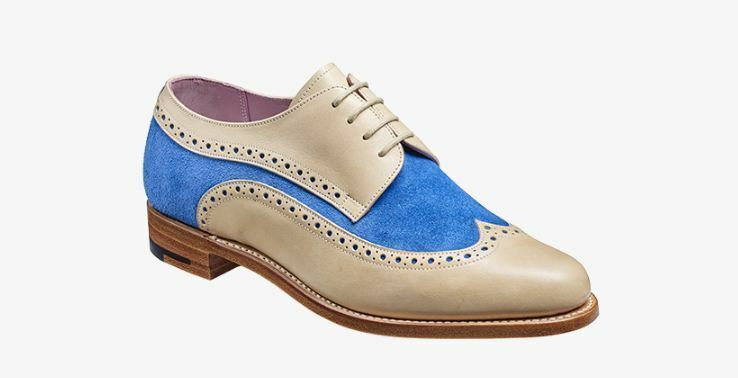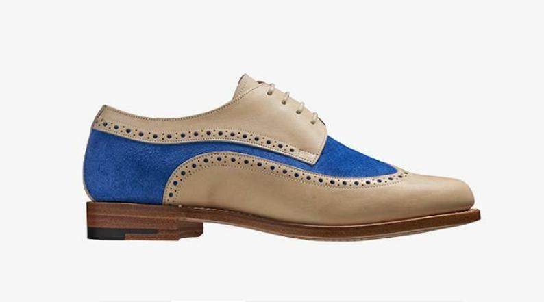 Blue Suede Beige Genuine Leather Wing Tip Handmade Lace Up Natural Color Sole Shoes