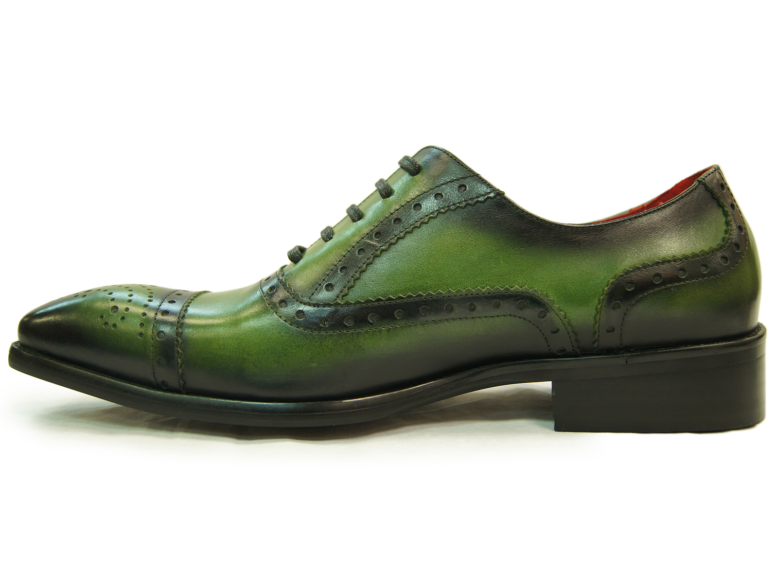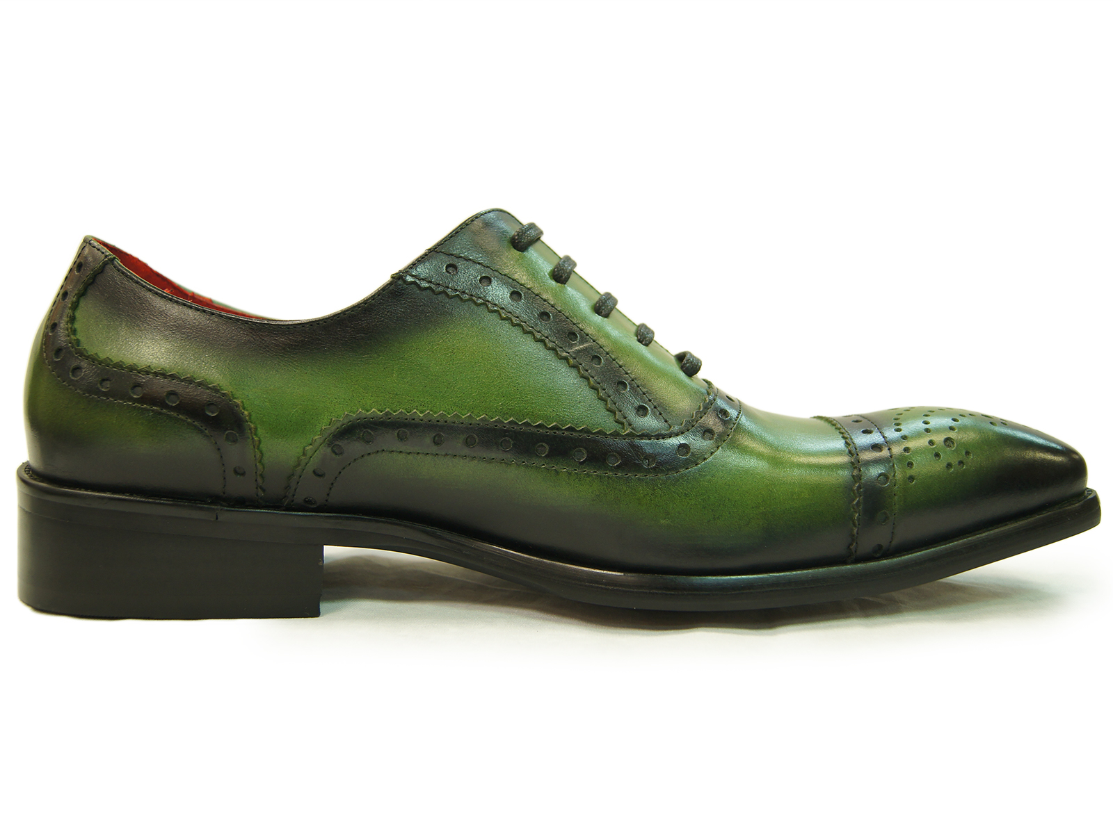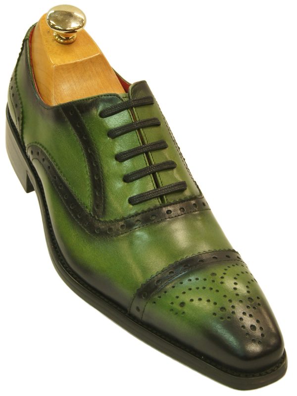 Made To Order Oxford Rounded Medallion Cap Toe Green Genuine Leather Handmade Shoes