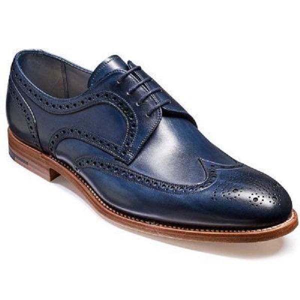Men's Oxford Blue Brogue Genuine Leather Customize Dress Shoes