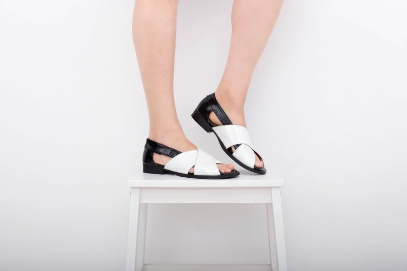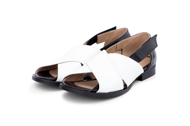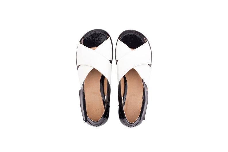 Two Tone Black White Premium Quality Leather Atrractive Slide Sandals
