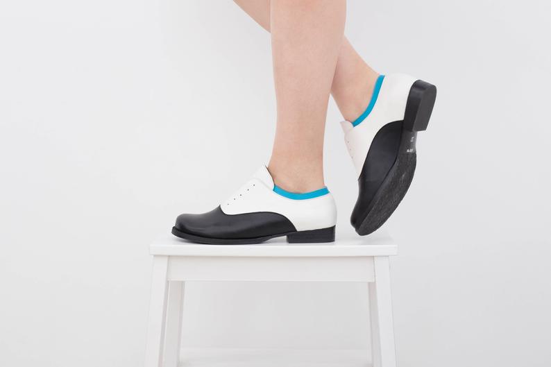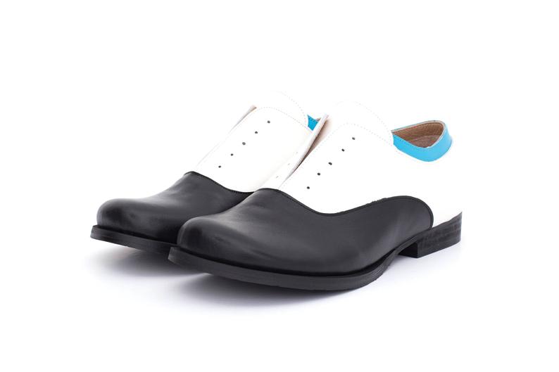 Two Tone Black White Derby Oxford Genuine Leather Handcrafted Formal Shoes