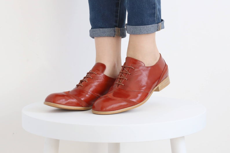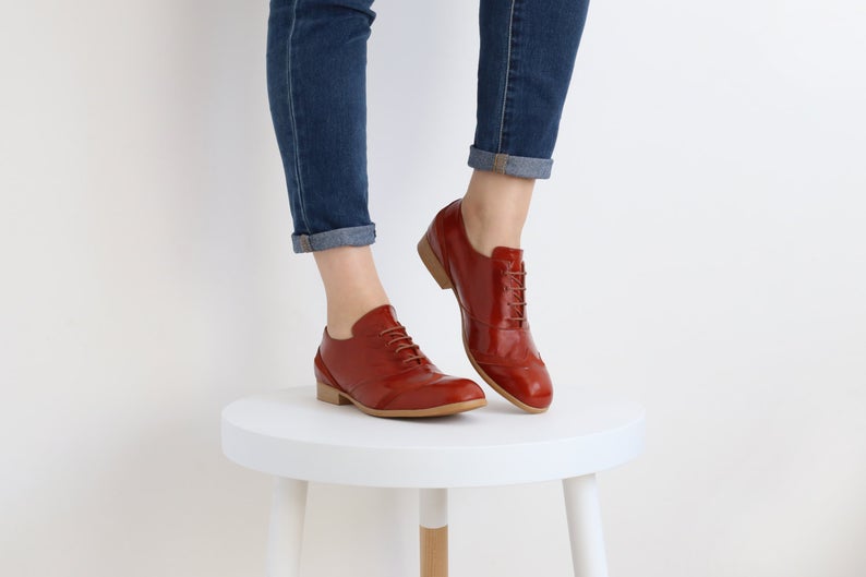 New Oxford Women Red Lace Up Rounded Derby Toe Leather Stylish Party Wear Handmade Shoes