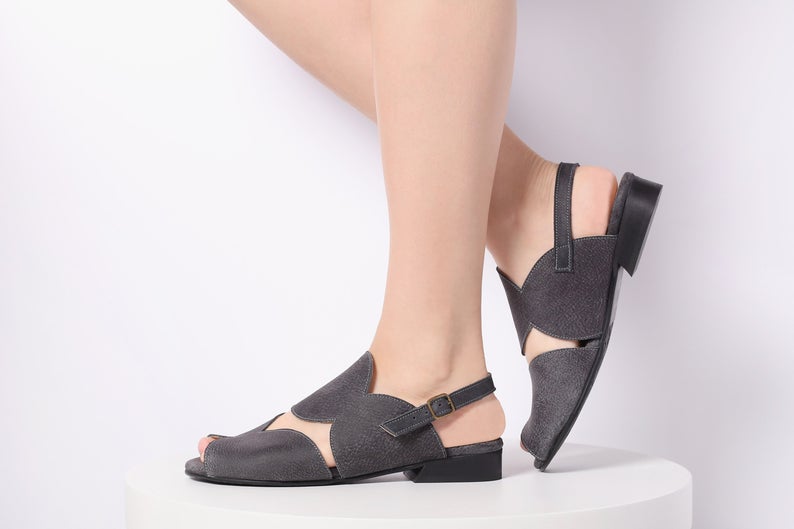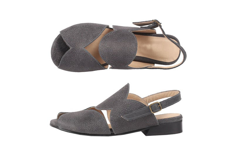 Black Suede Leather Peep Toe Geometric Cutout Slings Back Women Sandals
