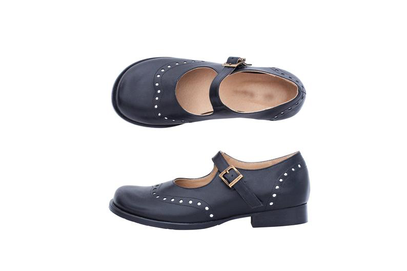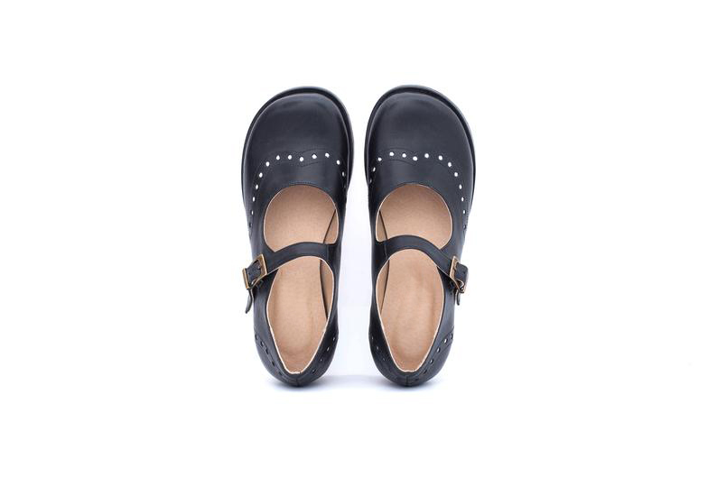 Women New Black Real Leather White Beads Buckle Strap Handmade Classic Shoes