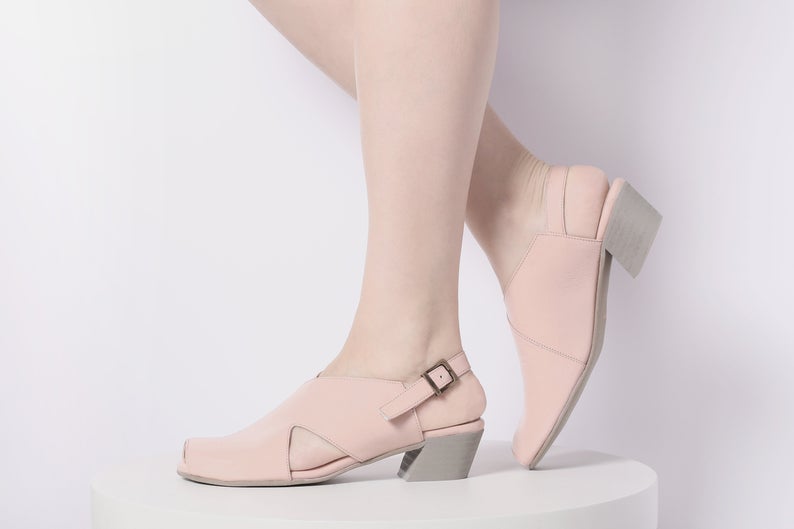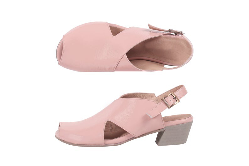 Pastel Pink Women Low Heel Patent Leather Handmade Customize Slingbacks Sandals