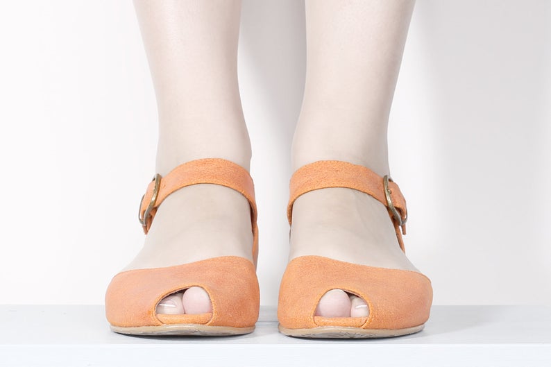 Women's New Orange Sandals Peep Toe Buckle Strap Premium Quality Leather Handmade Sandals