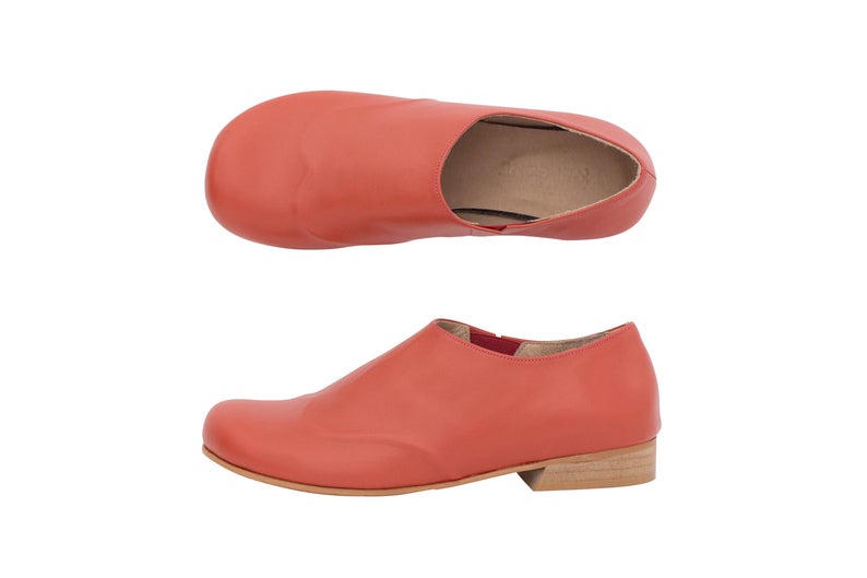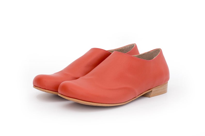 Women's New Orange Derby Loafer Slips On Unique Handmade Leather Party Wear Shoes