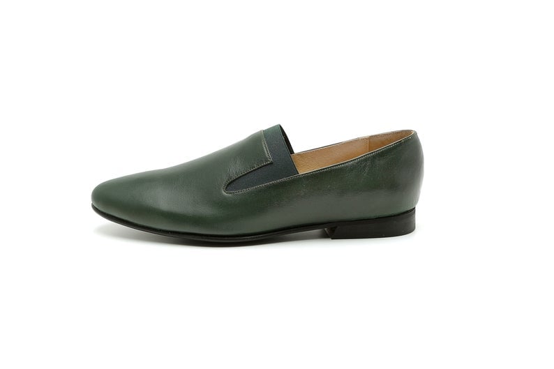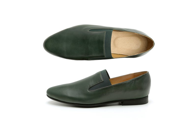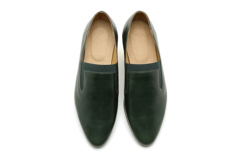 Womens Dark Green Loafers Slips On Flat Pointy Toe Classic Leather Shoes