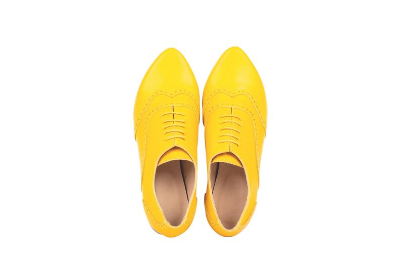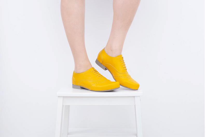 Yellow Oxford Derby Wingtip Vintage Leather Handmade Women Superior Party Wear Shoes