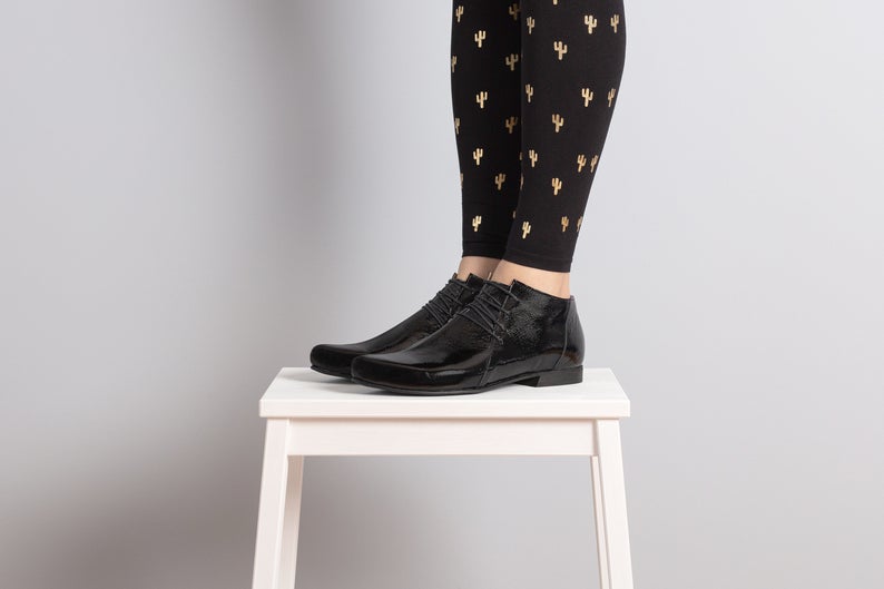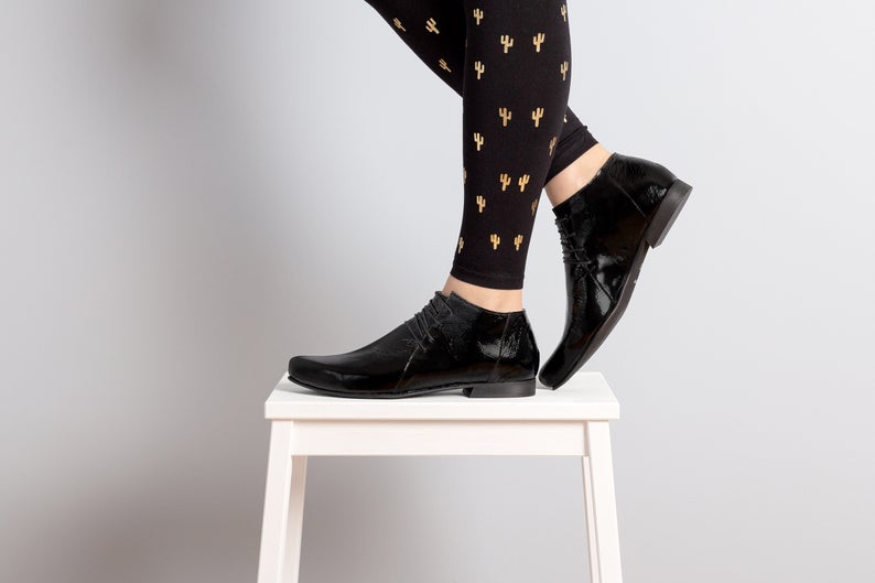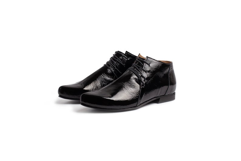 New Women Black Oxford Patent Leather Derby Lace Up Classic Formal Handmade Shoes