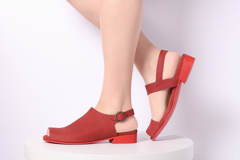 New Red Women's Handmade Leather Attractive Slingbacks Sandals