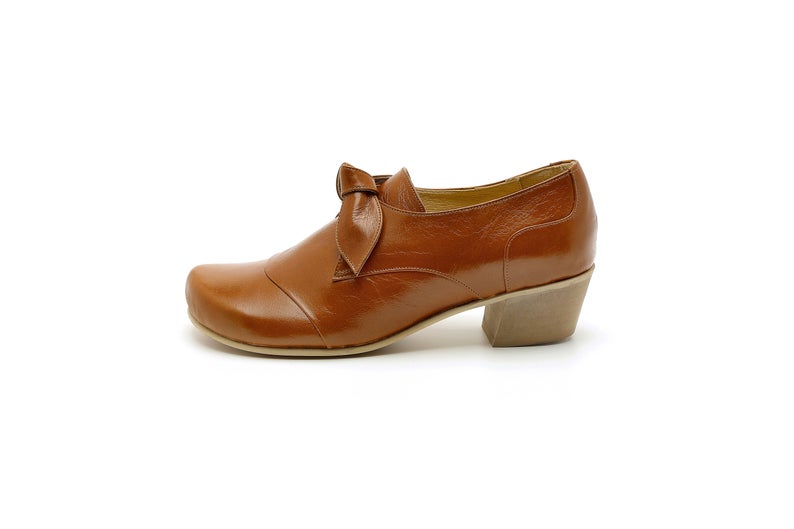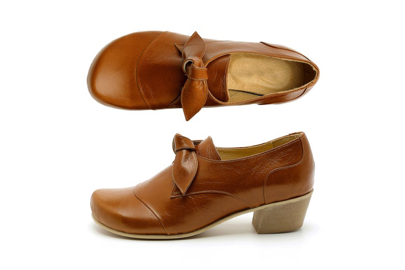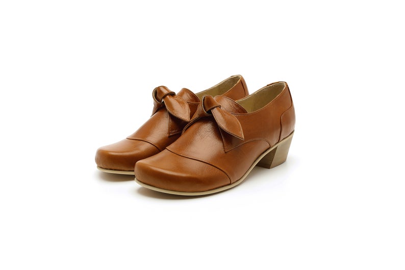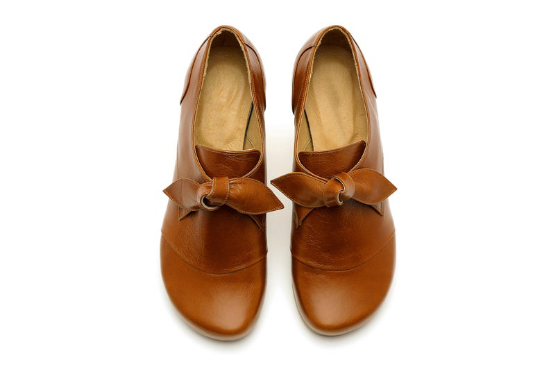Made To Order Women's Brown Pure Leather Butterfly Design Luxury Dress Shoes
