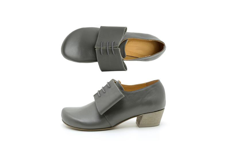 Gray Genuine Leather Handcrafted Women's Formal Dress Classic Shoes