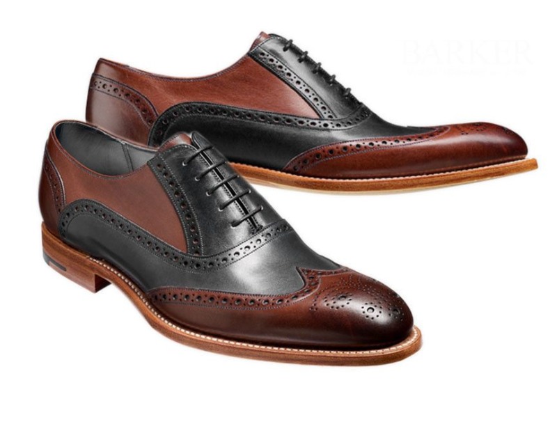 Black & Burgundy Color Oxford Wingtip Brogue Handmade Genuine Leather Men Shoes