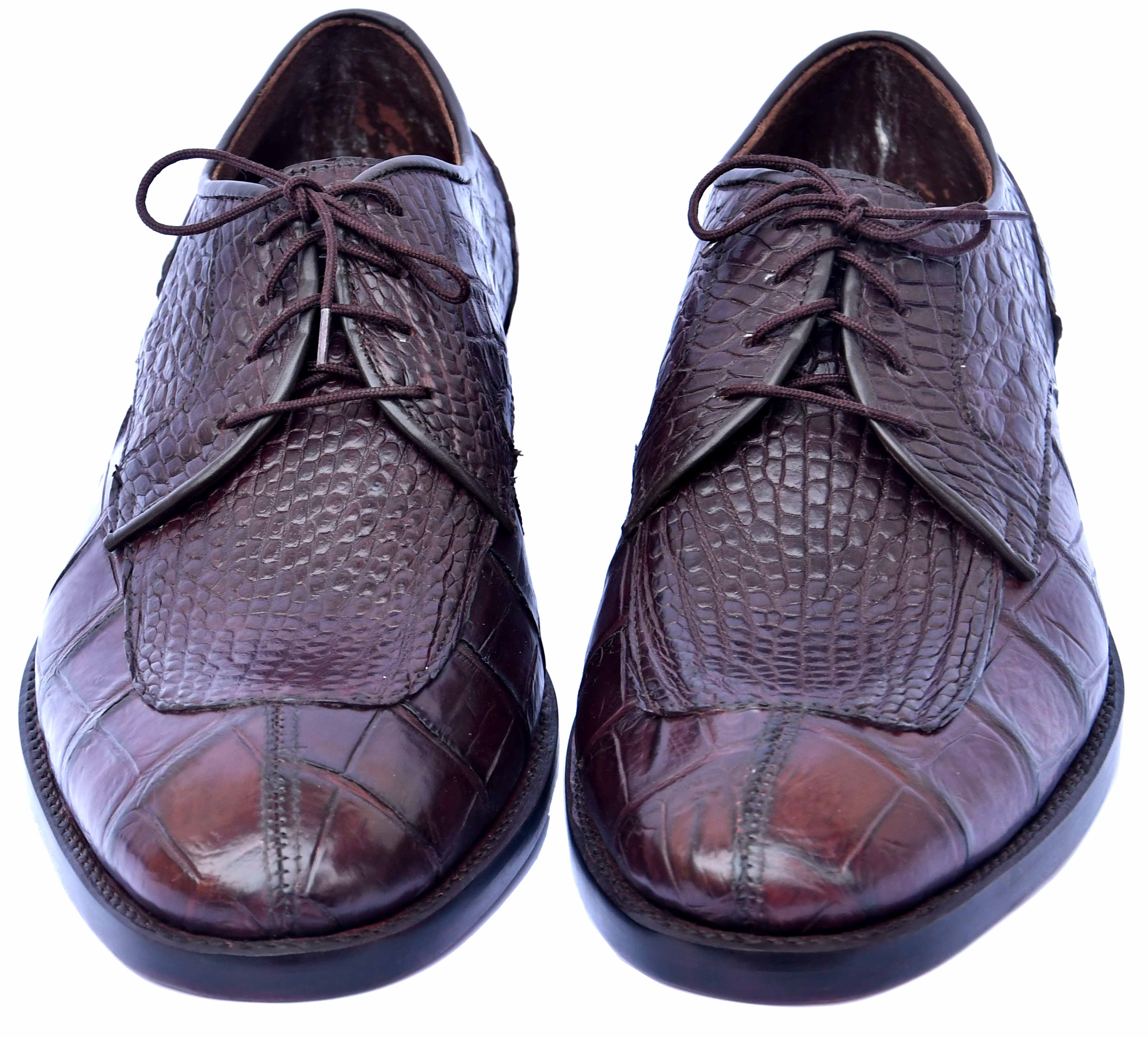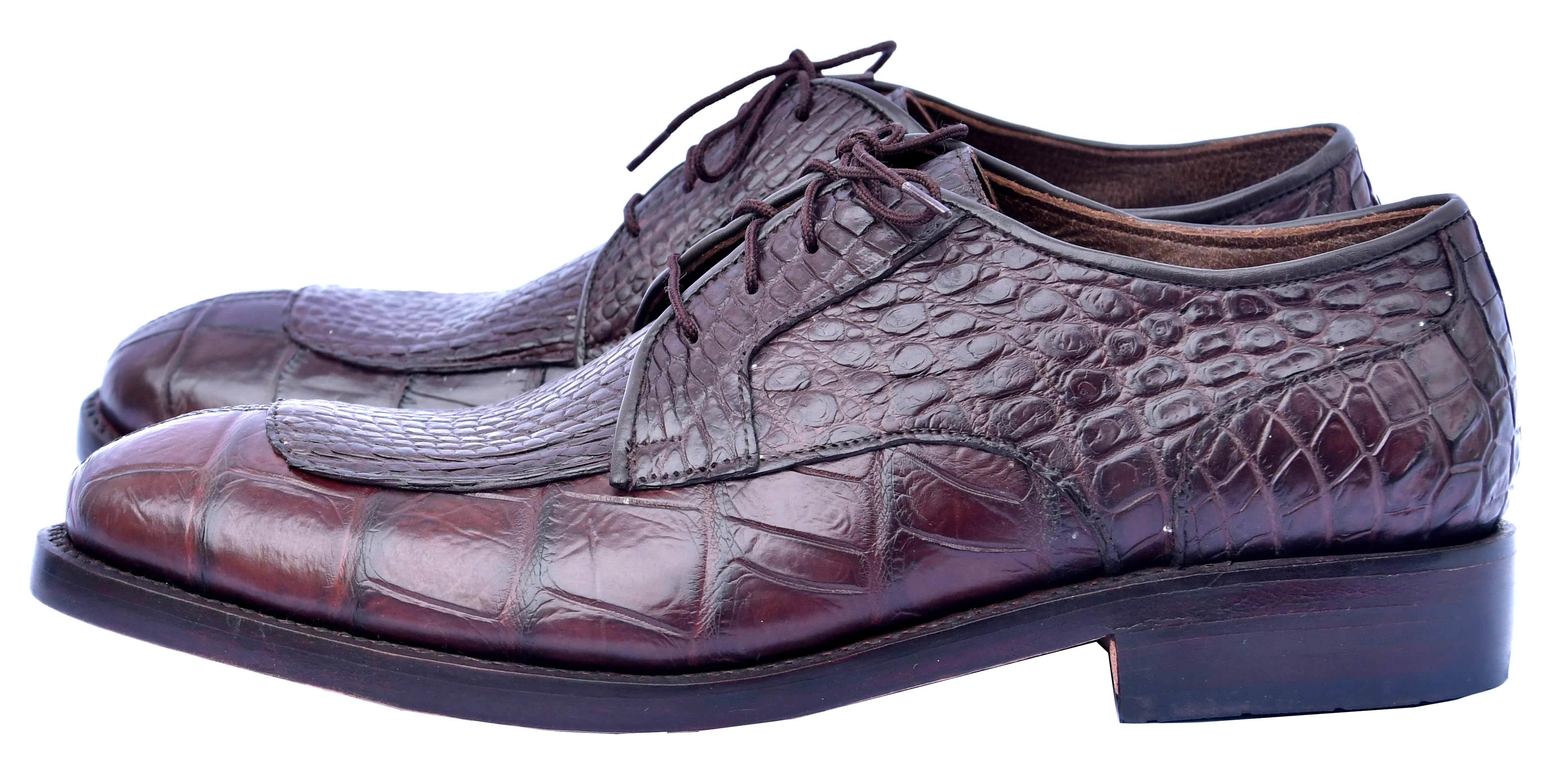 Fully Hand Made Products Prepared From Genuine Crocodile Leather Blucher Excelling Real Crocodile Leather Woody Brown Split Toe Men Dress Shoes Excelling Quality Dress Pairs Woody Brown Color Genuine Crocodile Leather Split Toe Outstanding Good Year Welted Sole Strong Fastening With Classical Quality Lace Up Solid Grip With Back Stay Heel Counter Fine Double Sole With Stable Low Heel For Enjoyable Smooth Walking Made From 100% Genuine Crocodile Leather Designed For Men Sublime Formal Dress Shoes Available In Three Sizes US 8, US 8.5 & US 9 Qualities: Premium Quality Full Grain Leather Hand Crafted Boots, Upper Made With Full Tanned Flawless Part Of Calf Skin, Lining Of Quality Sheep Skin, Inner Of Quality Shank Board, Real Leather Vegetable Tanned Leather Soles, Hand Stitched Good Year Welted Soles With Bead Around The Soles To Make Them Water Proof, Made For Last Long With Time And Care, Heels Made With Multi Layers Of Real Animal Skin, Heel Tip Full Rubber, You May Ask For A Winter Or Summer Pad Under Soles (Optional), You May Ask For A Logo Or Initials To Be Included On Your Shoe/Boot, And Inner Soles Of Quality Leather. You May Ask For Any Other Customization In Shoes Or Boots. Free Shipping Worldwide.