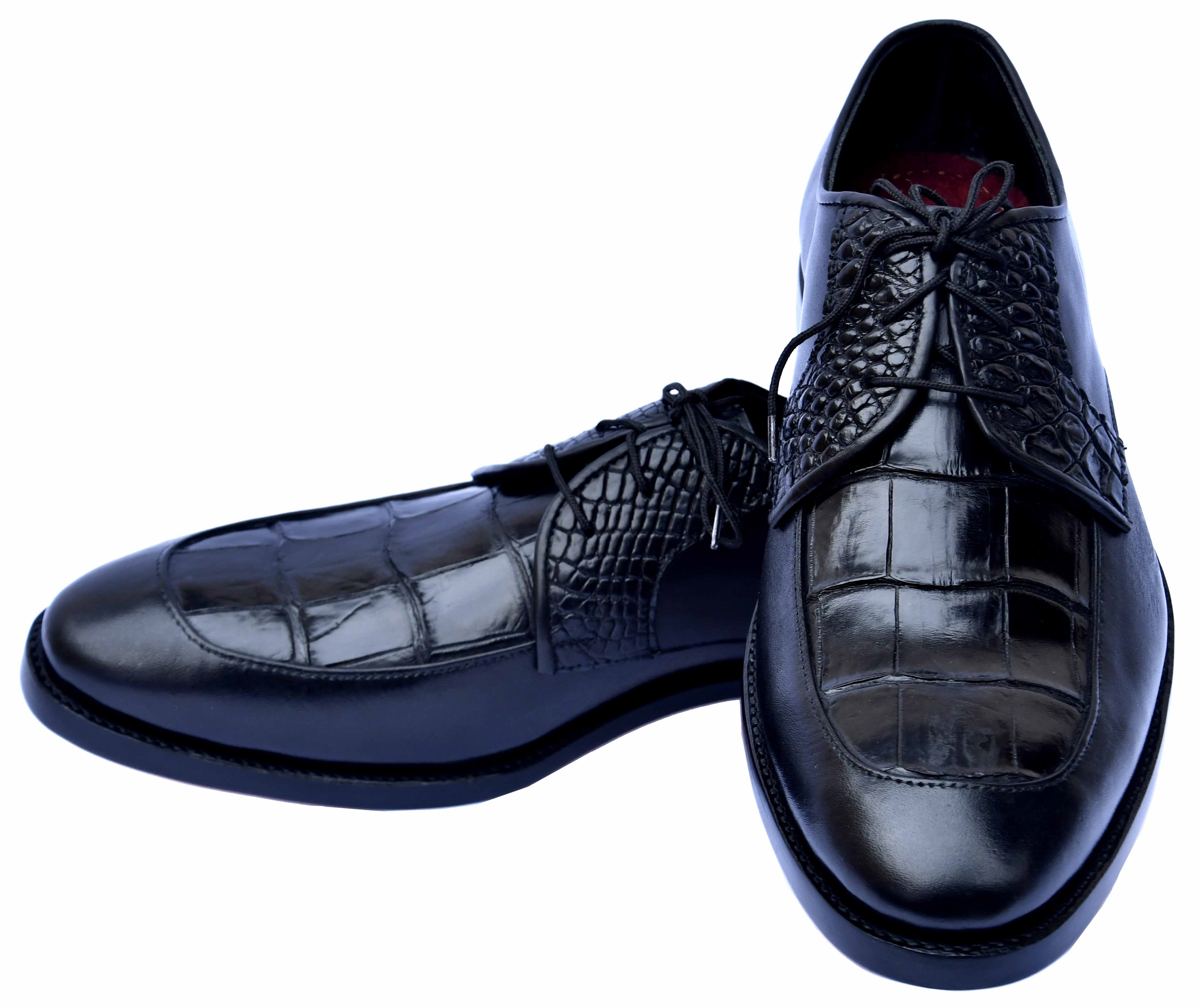 Crowning Black Color Moc Toe Genuine Upper Crocodile Leather Men Formal Shoes