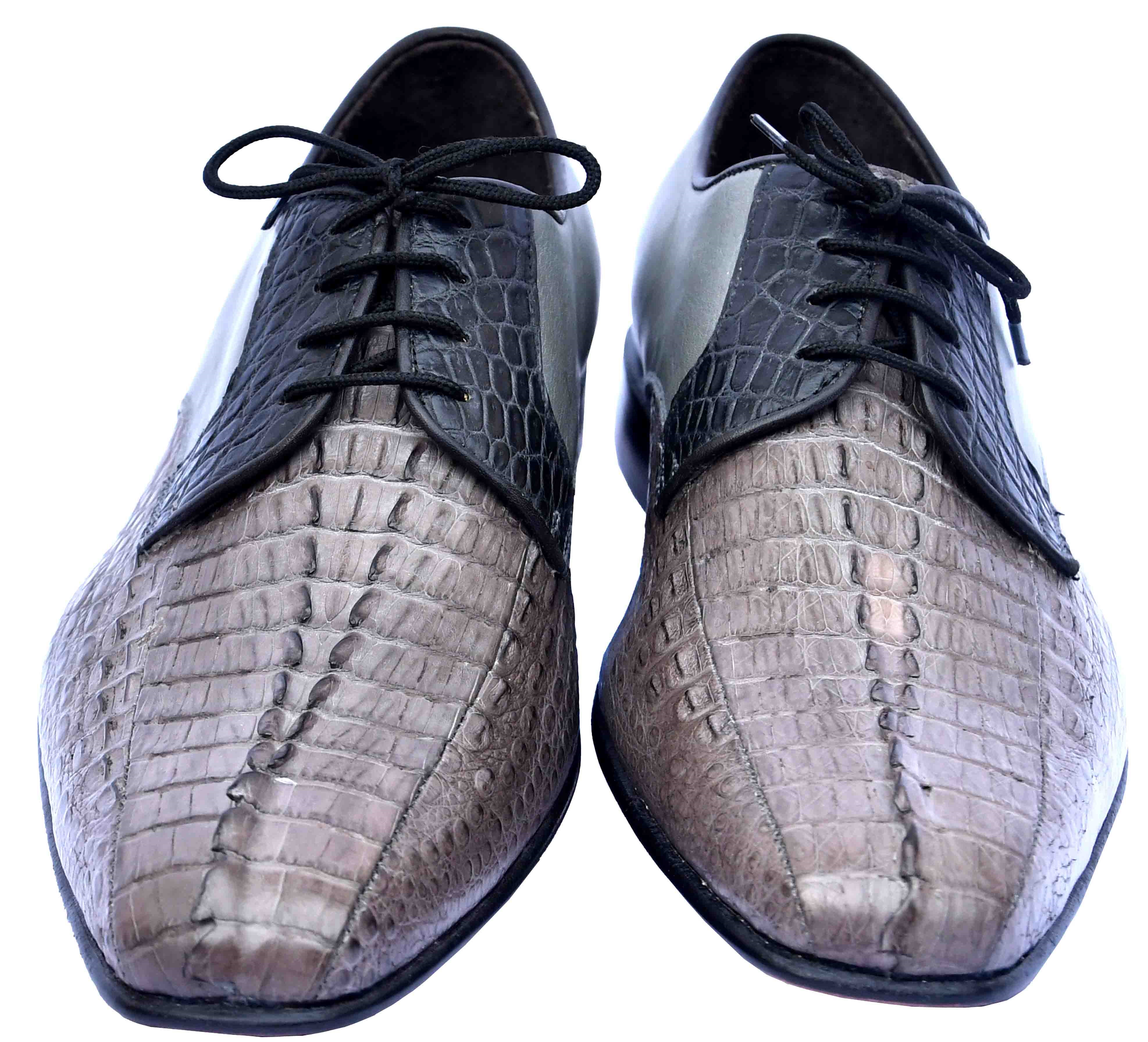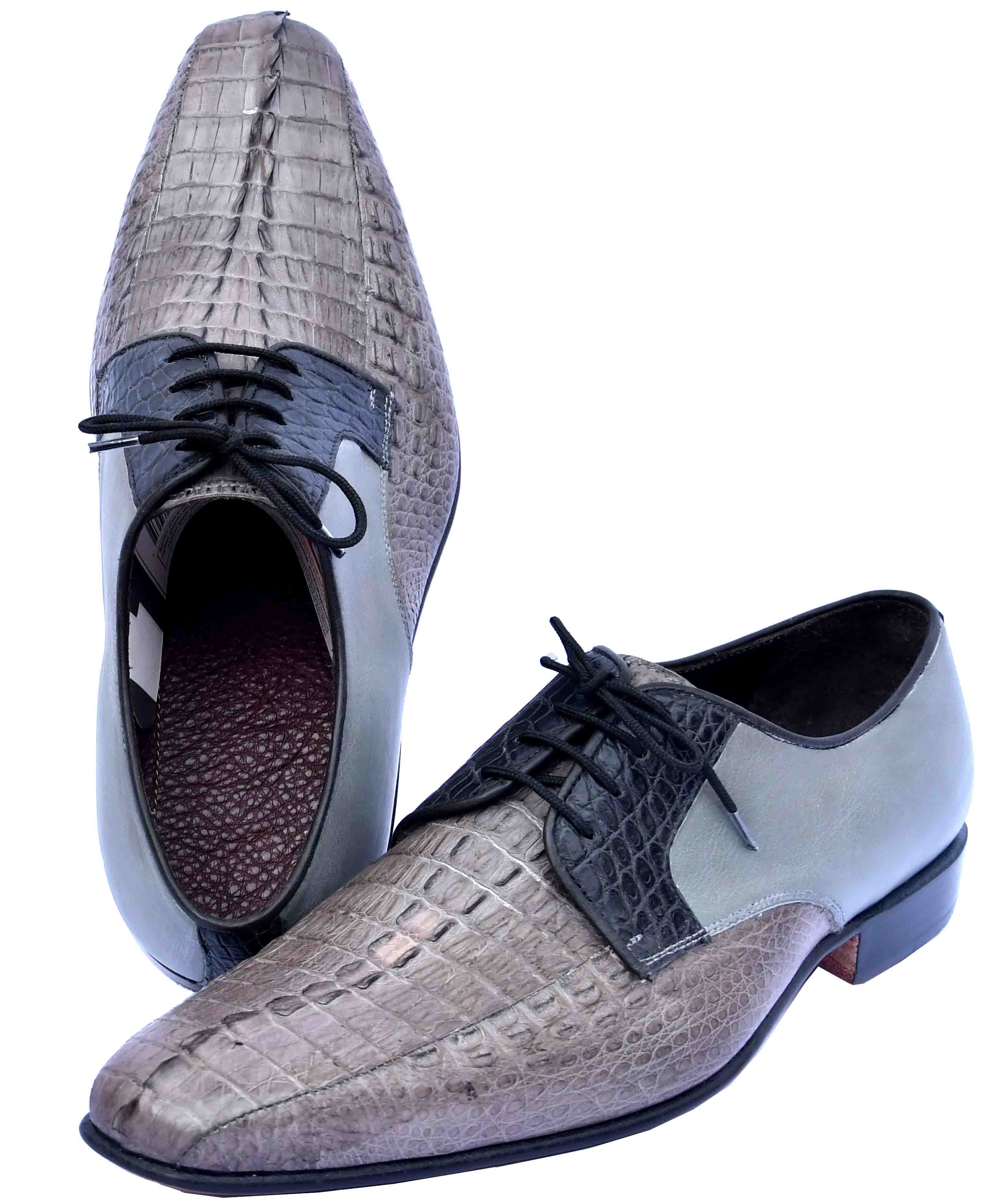 Luxury Shady Lady Black & Rock Blue Horn Back Blucher Crocodile Leather Shoes