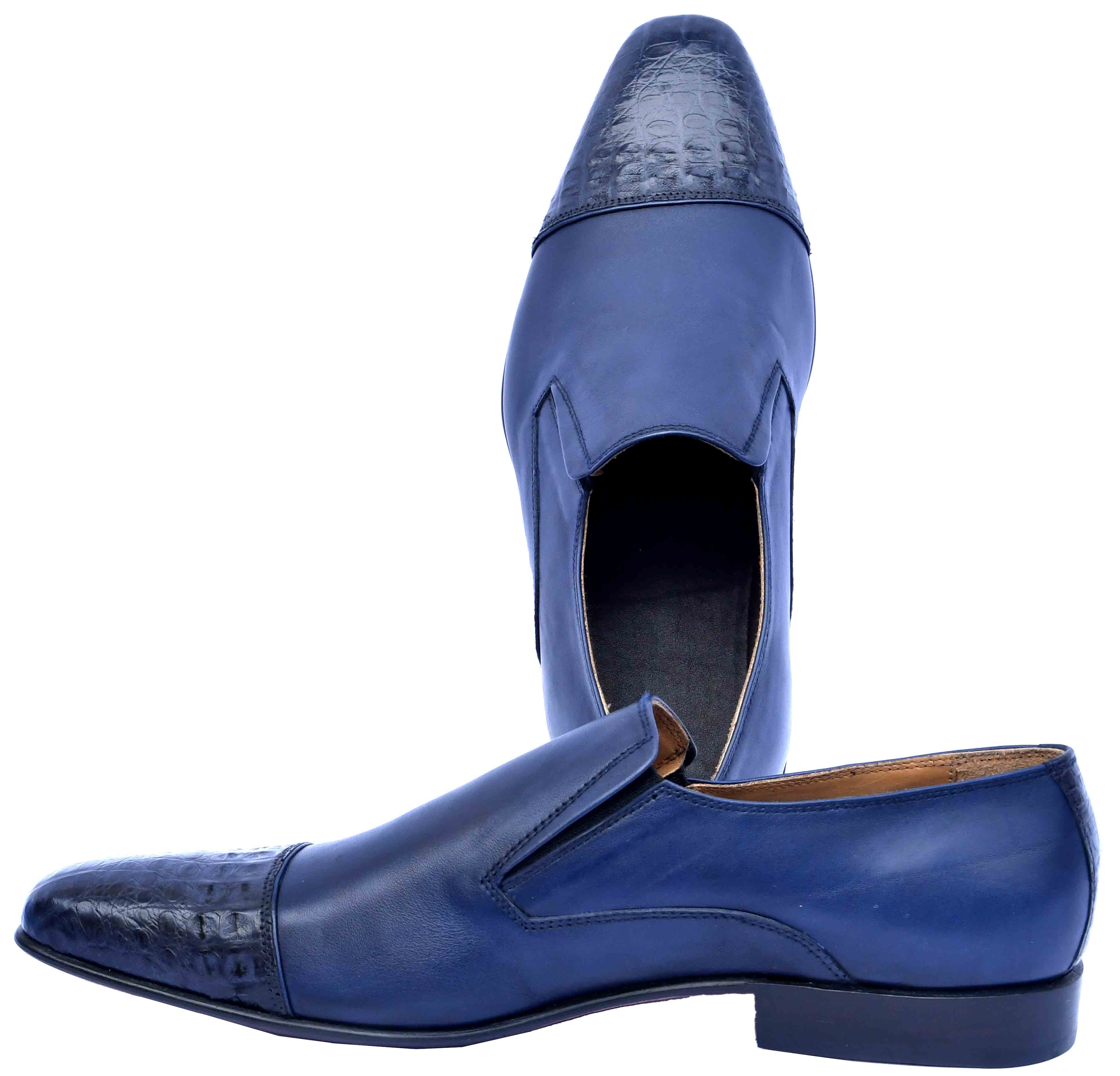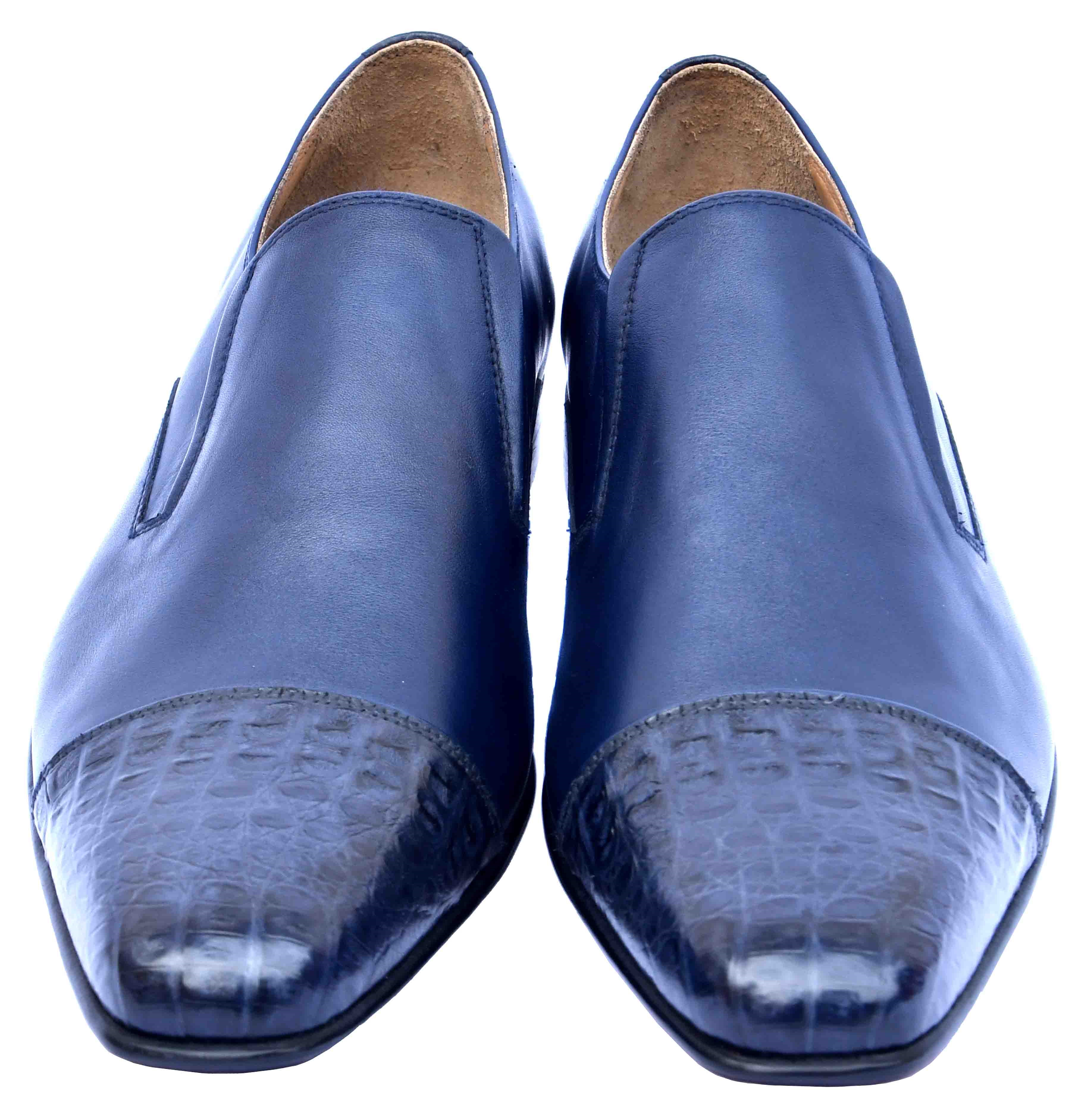 Astute San Marino Blue Elasticated Gores Premium Crocodile Leather Cap Toe Men Formal Wedding Shoes