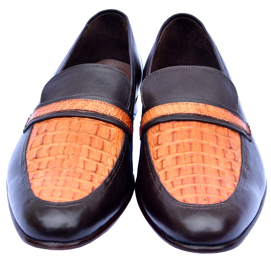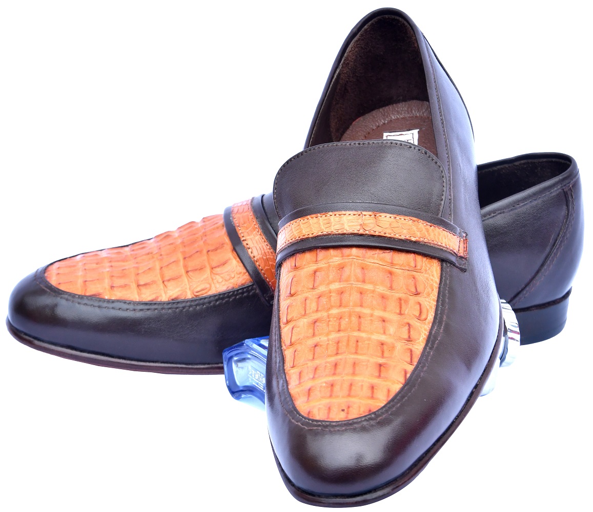 Special Foot-Wear Chocolate Brown & Crusta Orange Crocodile Leather Moc Toe Wedding Shoes