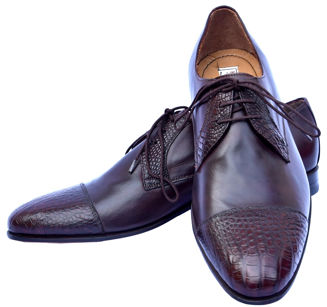 Customize Chocolate Brown Round Toe Blucher Pure Crocodile Leather Men Shoes