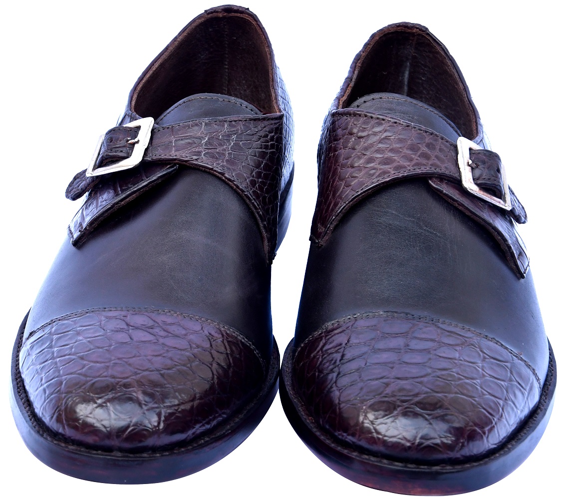100% Palpable Crocodile Leather Cap Toe And Single Strap Monk Style