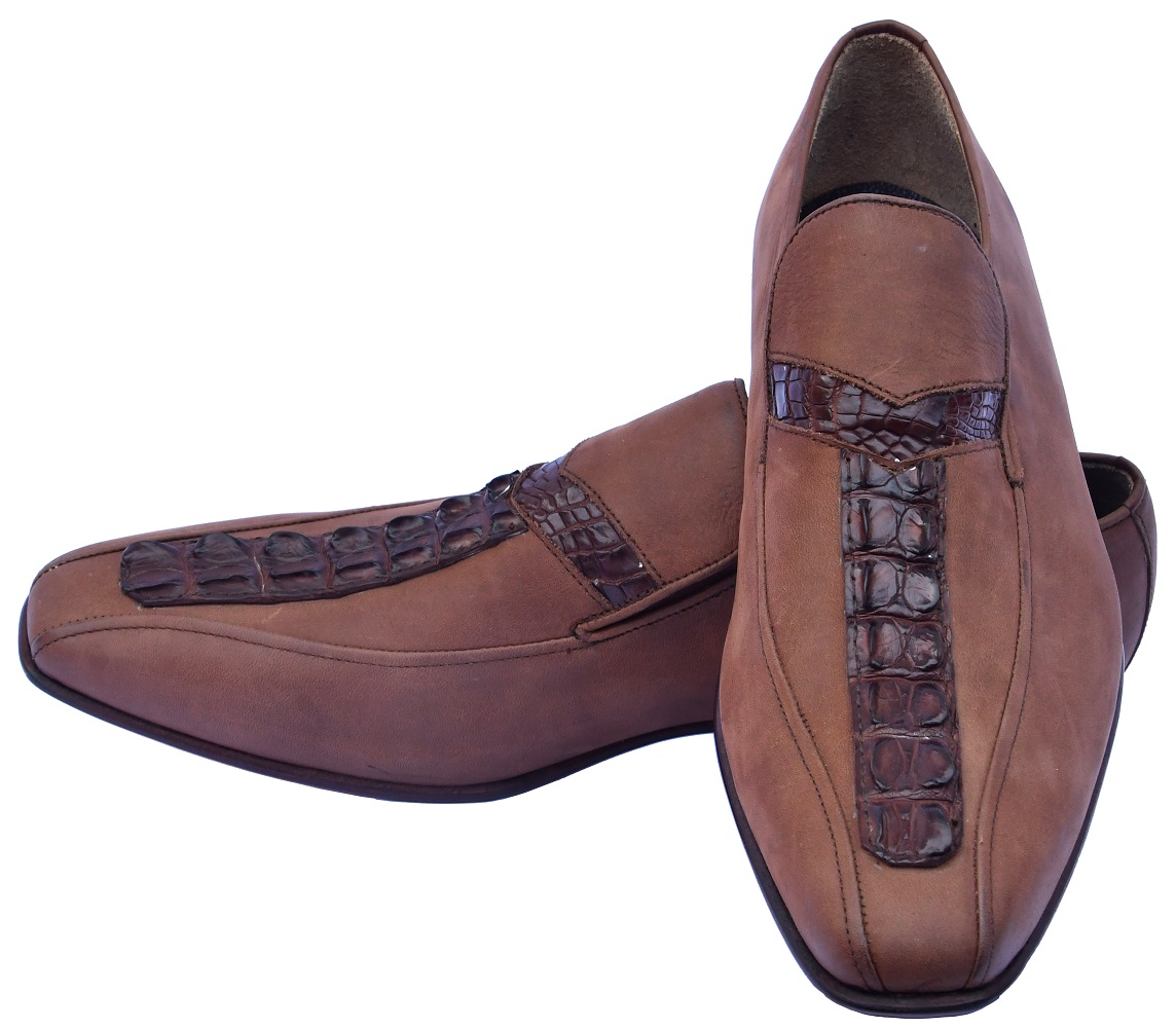 Impeccable Au Chico Brown Color Horn Back Strip On Vamp With Genuine Crocodile Leather Men Formal Dress Shoes