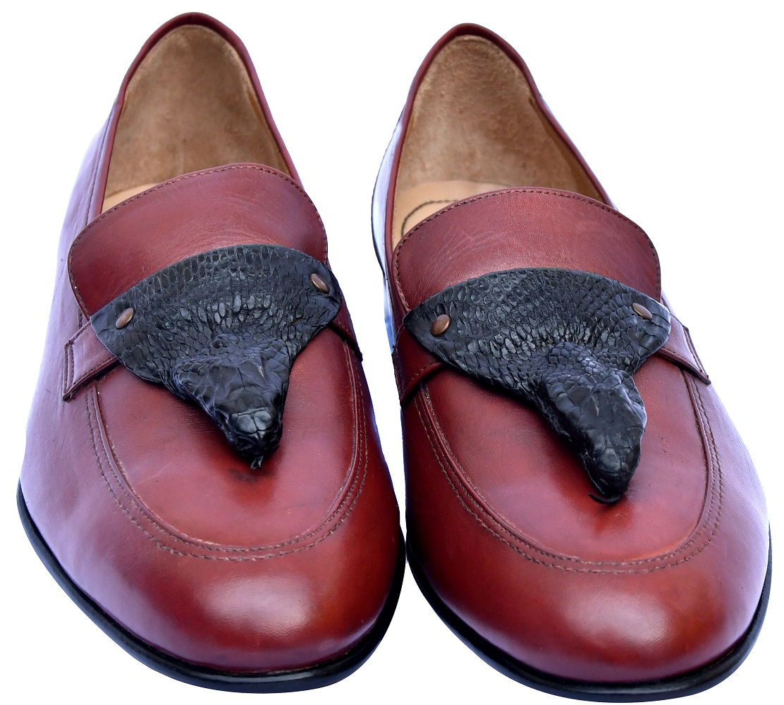 Excelling Genuine Black Cobra Snake Head Round Moc Toe Precise Leather Men Loafer Formal Shoes