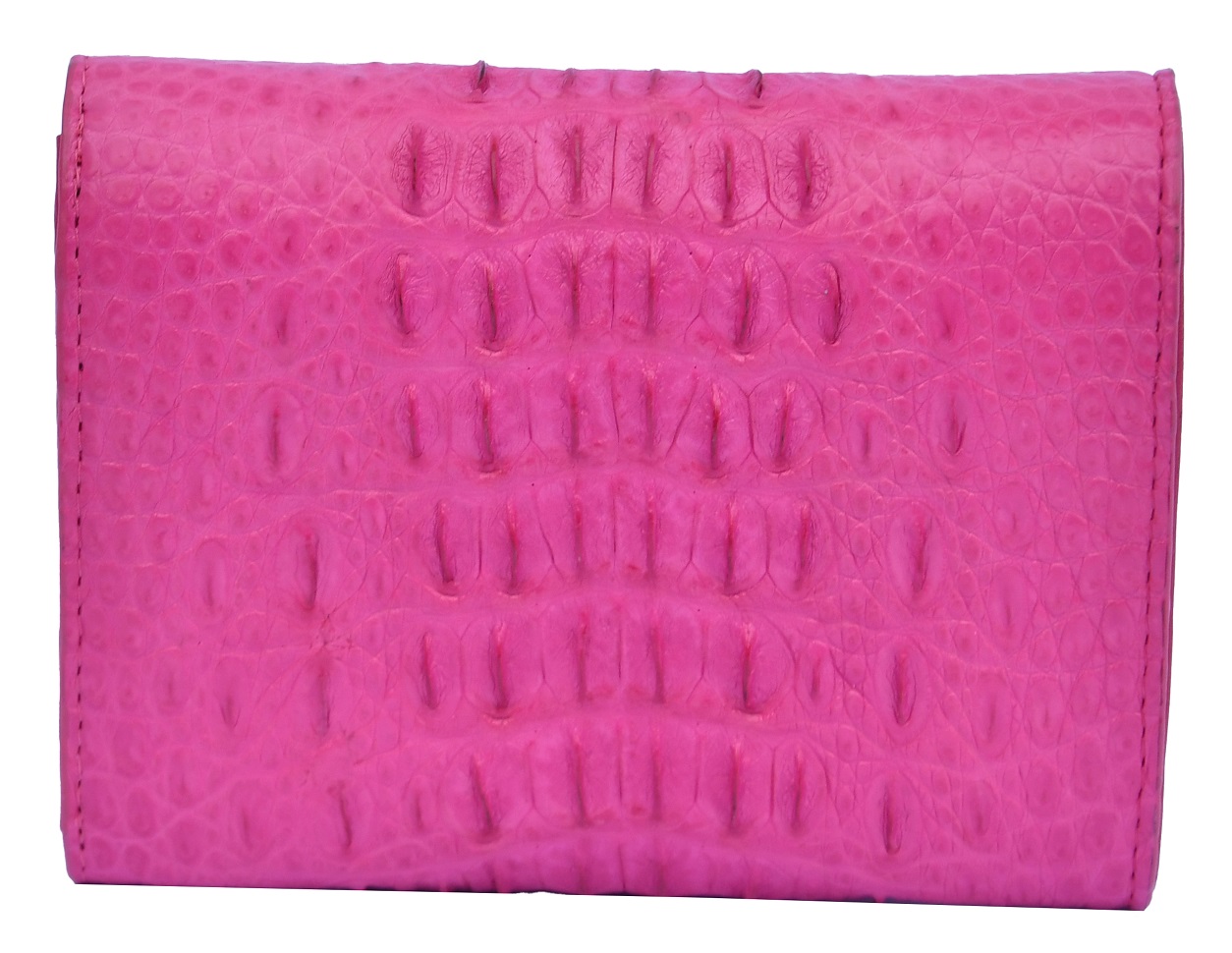 Handmade Deep Cerise Violet Many Slots Real Crocodile Leather Trifold Wallet