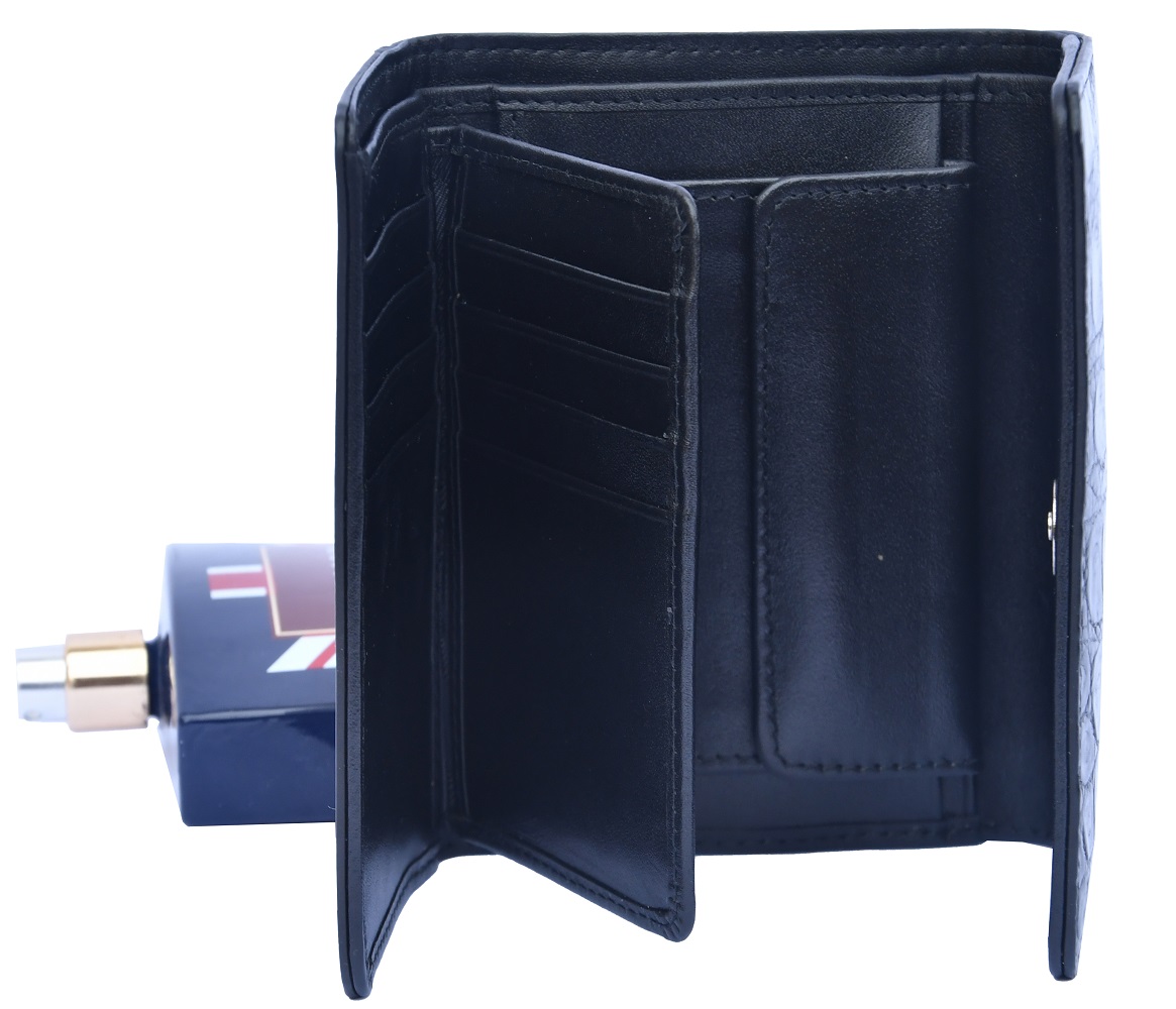 Unique Black Cash And Card Slots Button Closure Pure Crocodile Leather Wallet