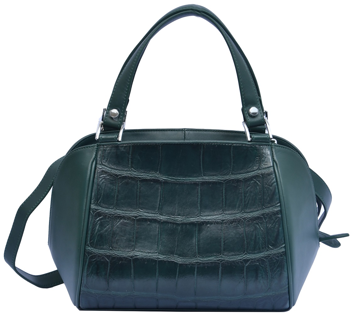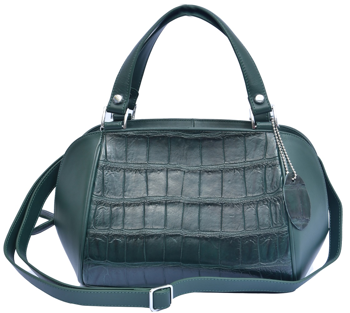 Reliable Forest Green Zipper Fastening Pure Crocodile Belly Leather Hand Bag