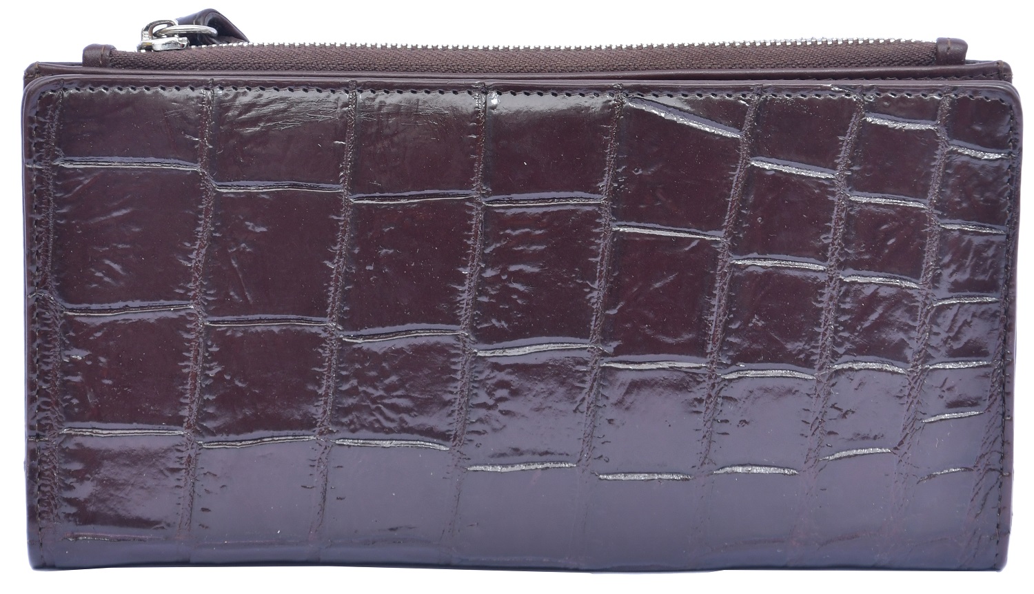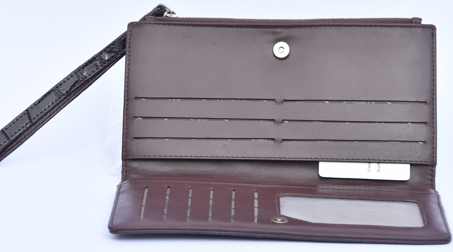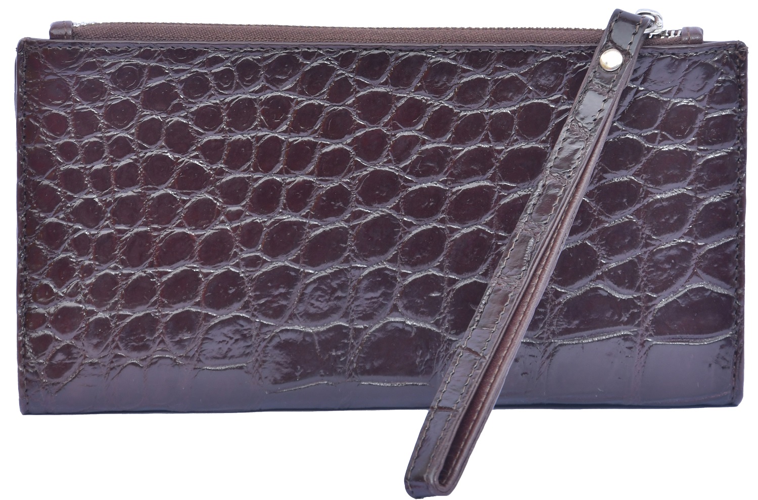 Sophisticated Brunette Brown Many Card Slots Pure Crocodile Leather Women Clutch