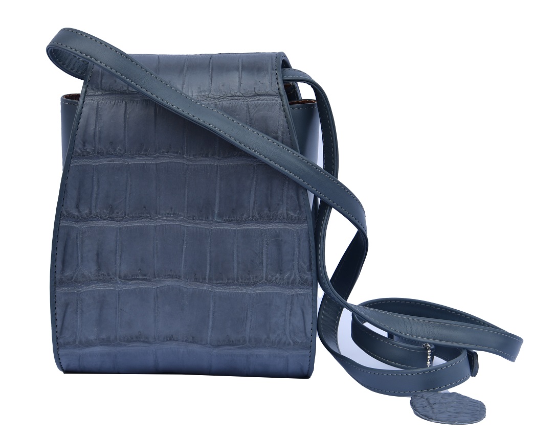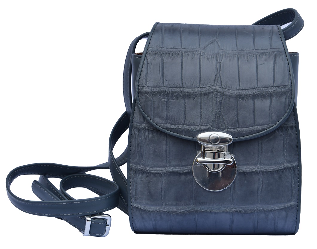 Crowning Slate Grey Nice Quality Sterling Crocodile Belly Leather Ladies Hand Bag