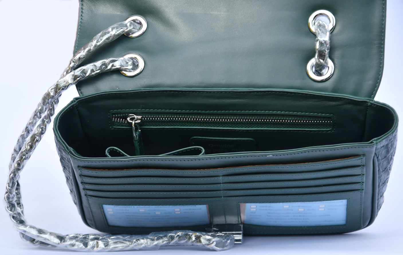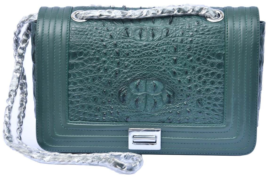 Gorgeous Tiber Green Decorative Horn Back Crocodile Leather Ladies Hand Bag