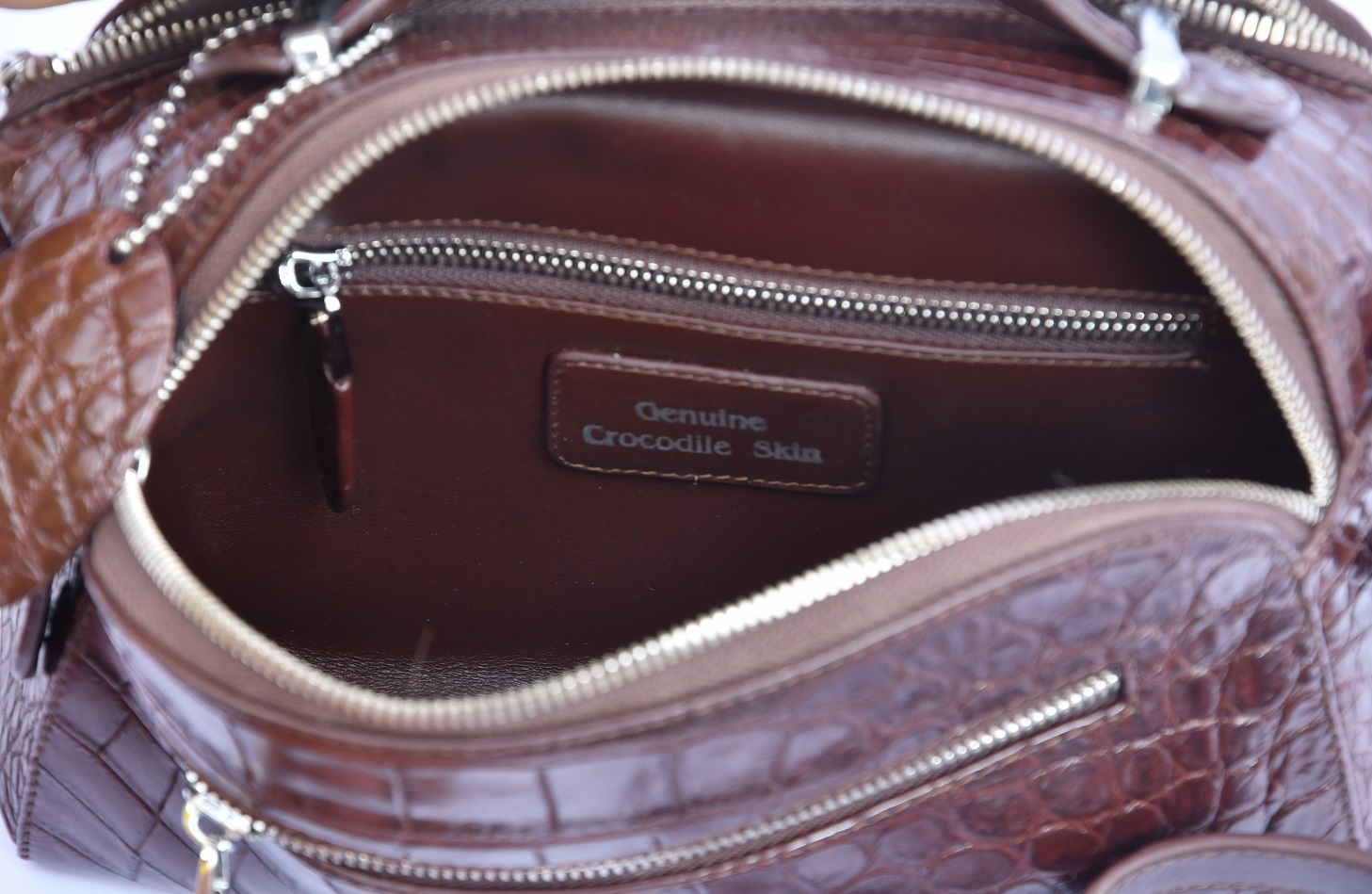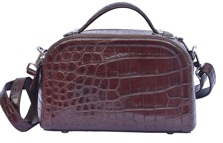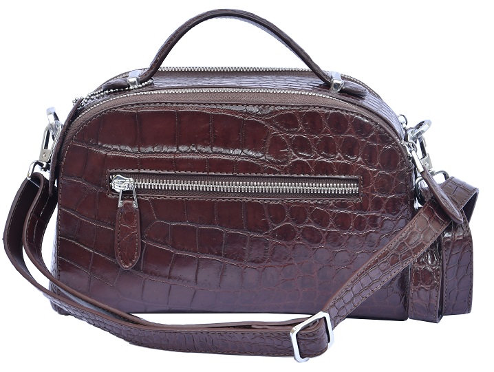 Ladies Choice Crater Brown Precise Crocodile Belly Leather Ladies New Hand Bag