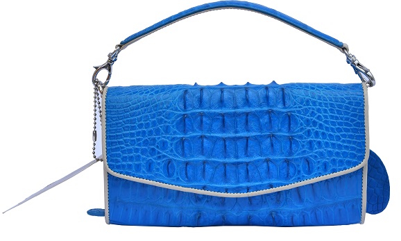 Women Favorite Denim Blue Splendid Quality Crocodile Horn Back Leather Purse