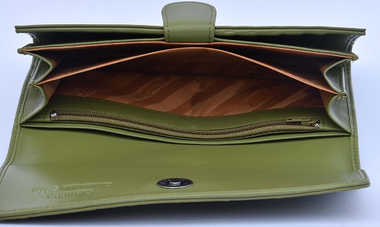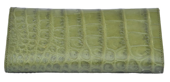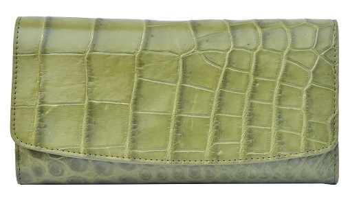 Sophisticated Light Green Trifold Style Premium Crocodile Belly Leather Clutch