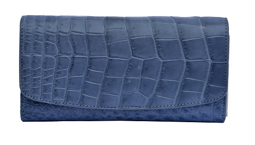 Women Satisfaction Light Blue Trifold Genuine Crocodile Belly Leather Clutch