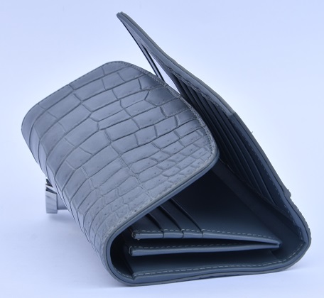 Nice Looking Light Blue Trifold Style Genuine Crocodile Belly Leather Clutch