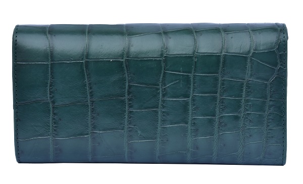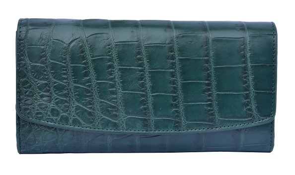 Nice Looking Forest Green Trifold Style Genuine Crocodile Belly Leather Clutch