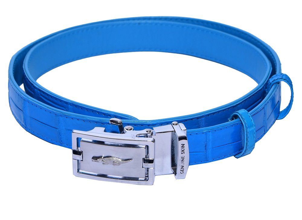 Splendid Sky Blue Alligator Print Box Frame Crocodile Belly Leather Belt
