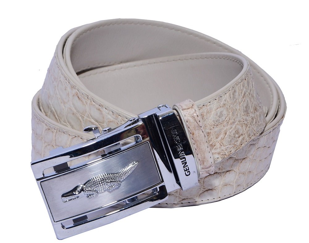 Unique Off White Auto Grip Silver Frame Genuine Crocodile Leather Belt