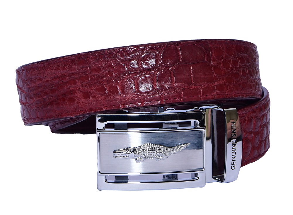 Royal Burgundy Crocodile Print Box Frame Precise Alligator Leather Men Belt