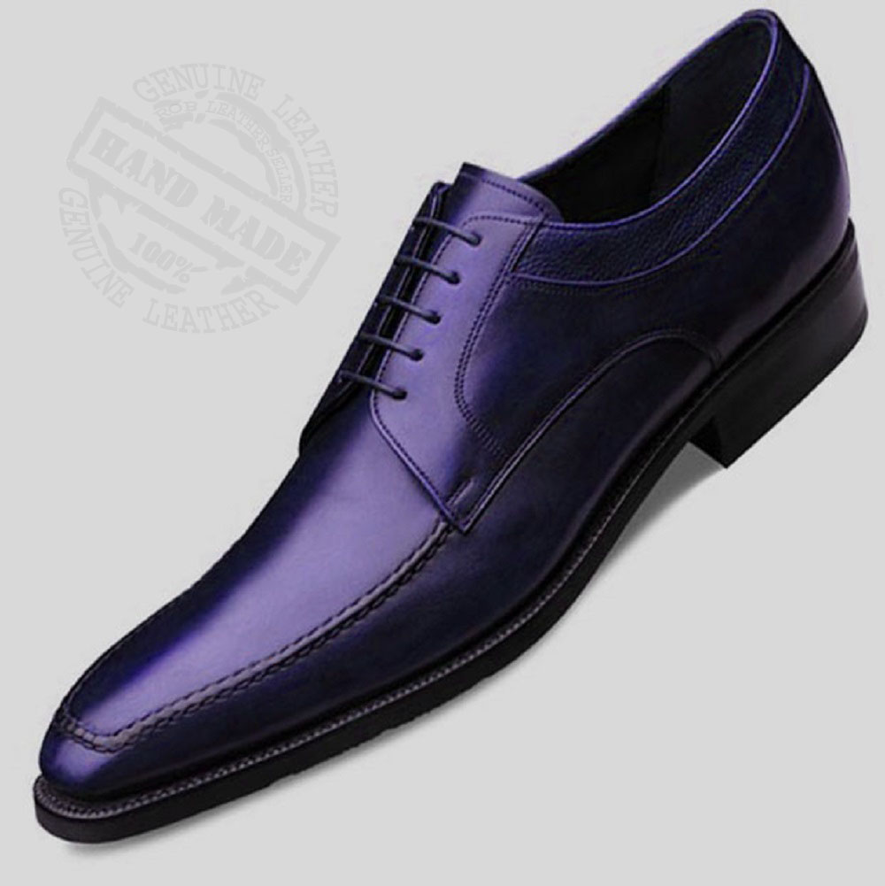 New Superior BLUCHER Style In Purple Color Genuine LEATHER Derby Wedding Shoes