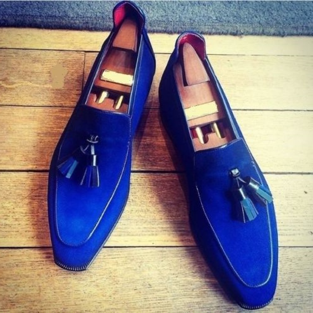 CLASSY BLUE Suede Leather LOAFER Style Original LEATHER Party Shoes For Men
