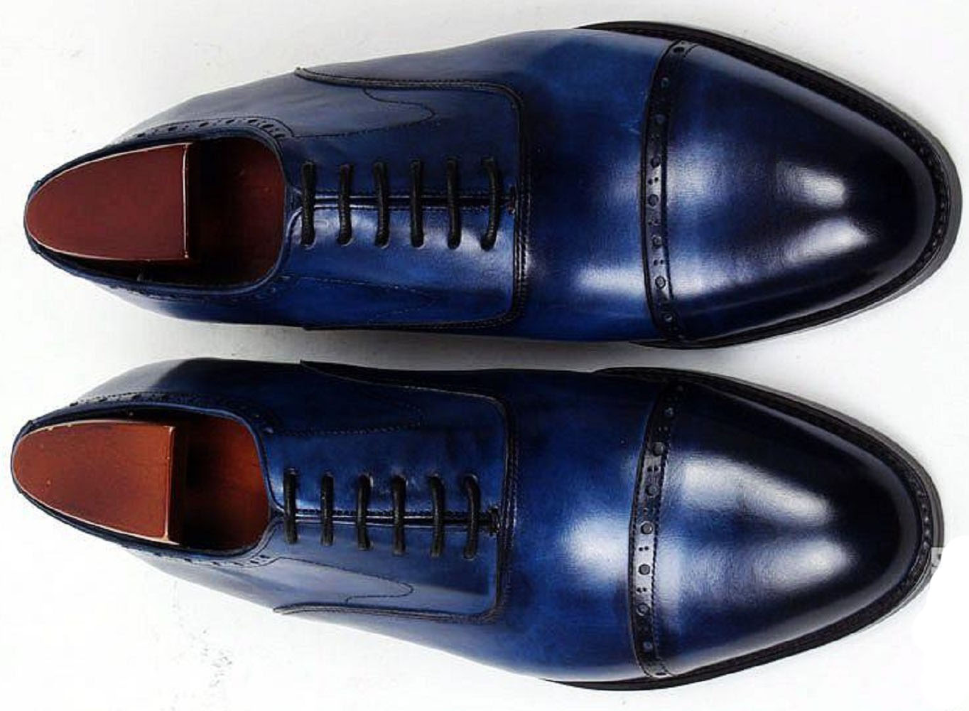 Space Blue Oxford Patina Real Leather Cap Toe Men Formal LEATHER Wedding Shoes