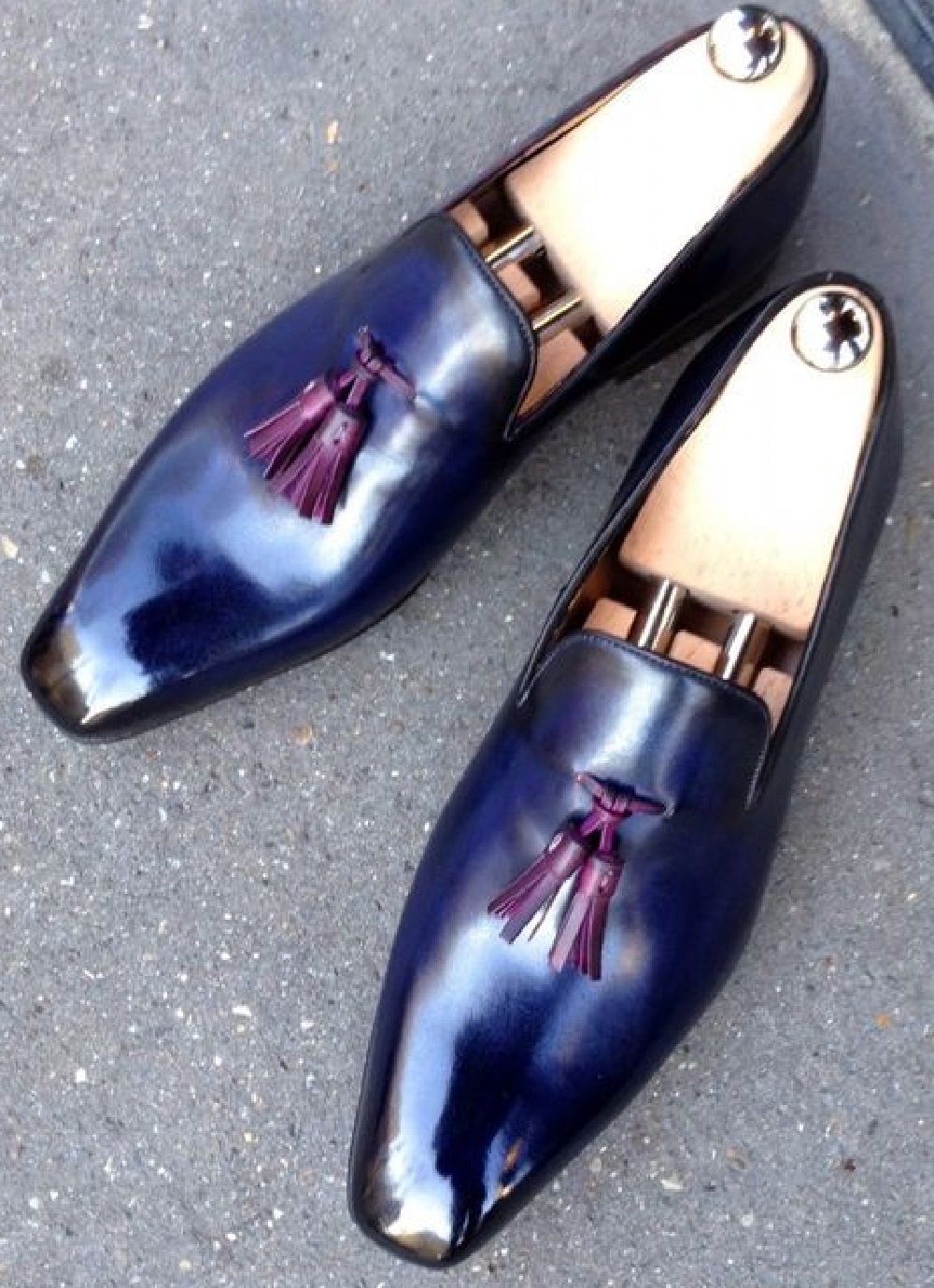Splendid Shoes In Jewel Blue Patina LOAFER Style With Tassels Original Leather Shoes