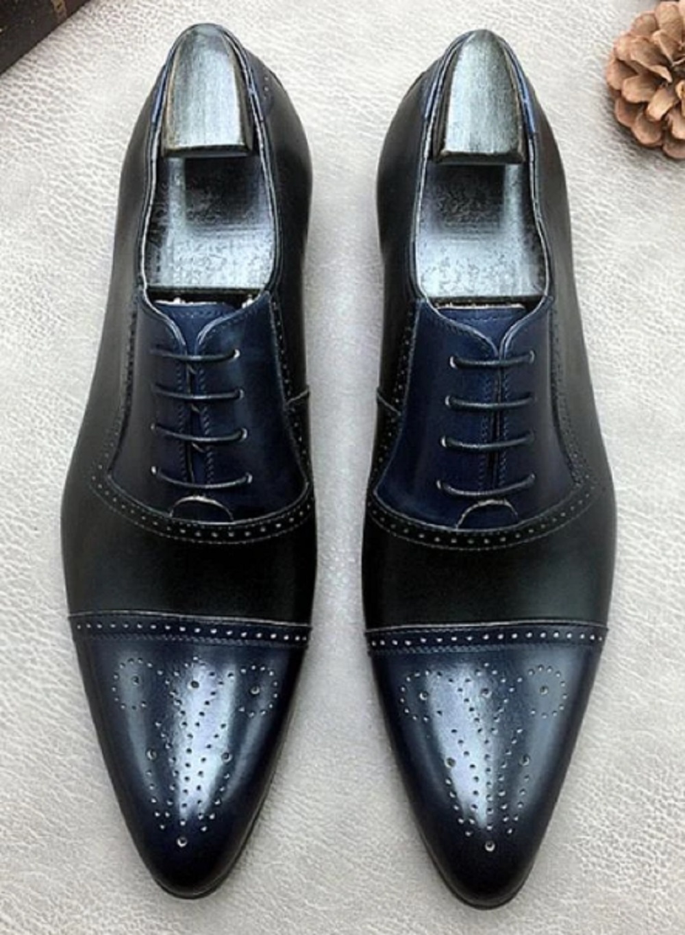 Dope Foot Wear Dark Blue Medallion Cap Toe Genuine LEATHER Men OXFORD Navy Officers Style Shoes