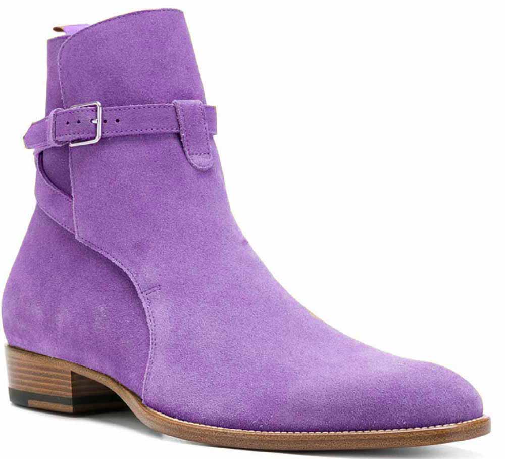 Handmade Suede LEATHER Wisteria Violet Round Strap Original LEATHER JODHPUR Boots